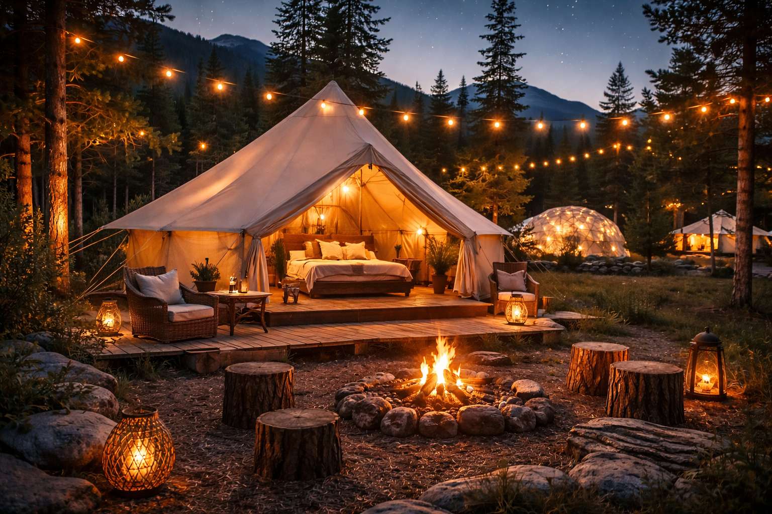 | Yurts & Geodesic Domes | Families, Groups | Affordable glamping entry, festive events | Strong; broadest market access |